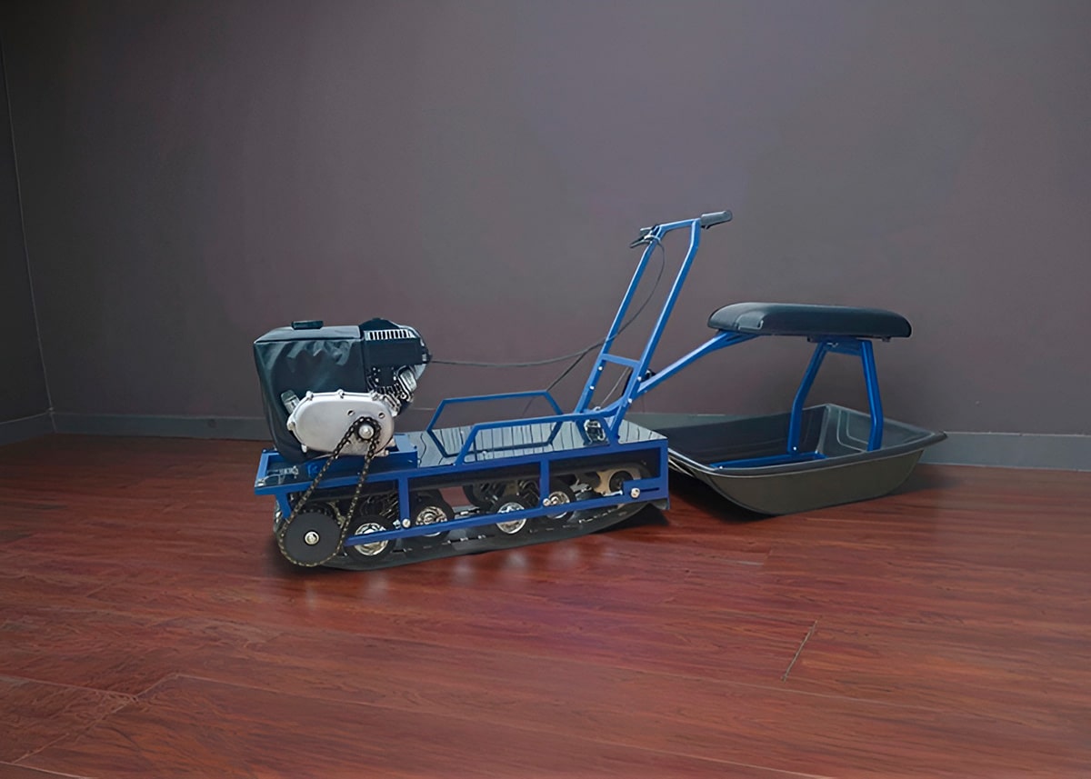 Альбатрос-L 8 без фары — это мотобуксировщик, оснащенный четырехтактным двигателем Lifan мощностью 8 л.с.