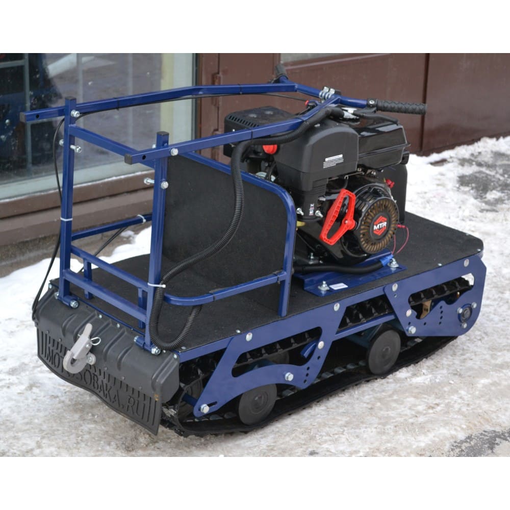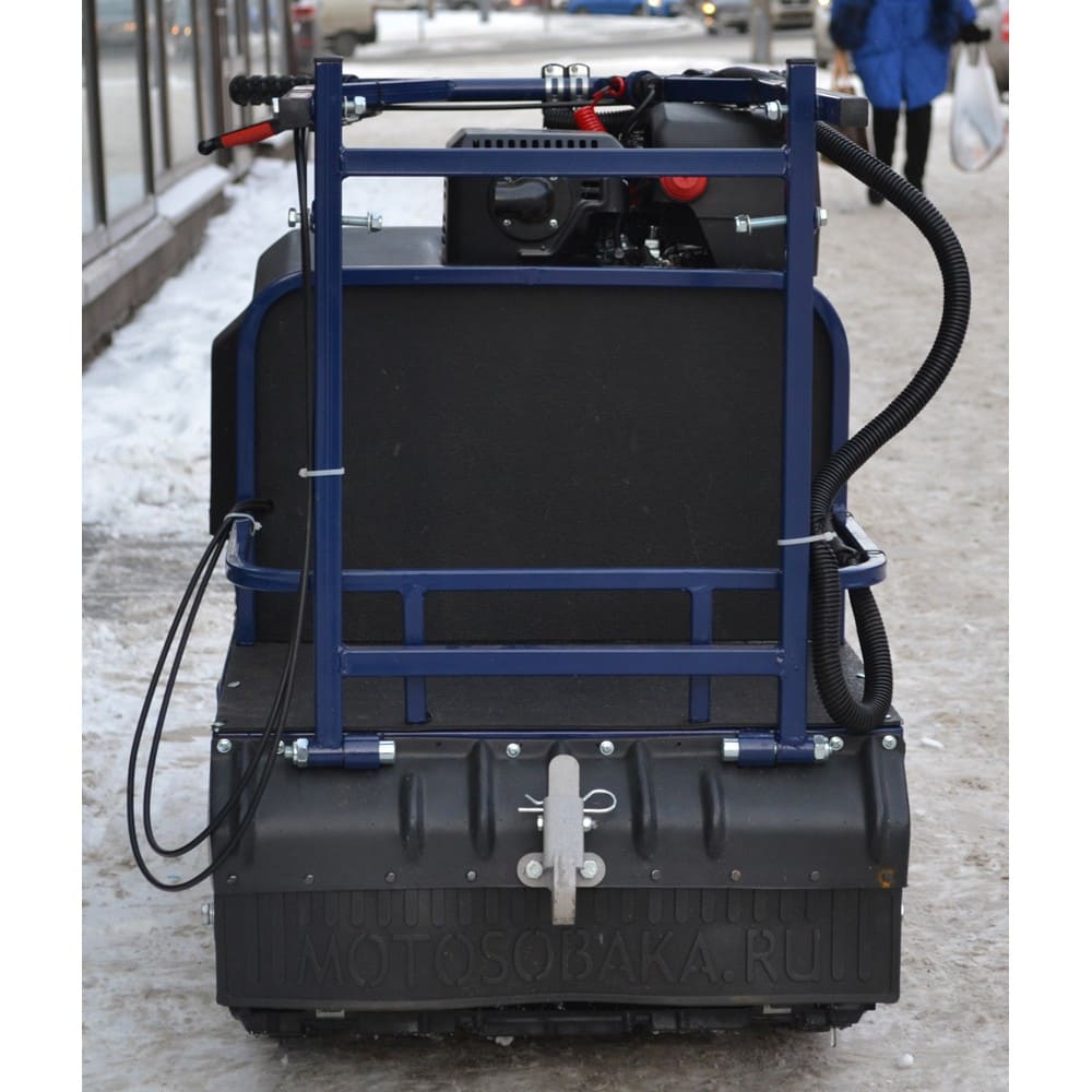 Мотособака весит 89 кг, а размер ее составляет 125 см в длину, 57 см в ширину и 72 см в высоту. Благодаря своим параметрам и конструкции мотобуксировщик может маневрировать и проходить по рыхлой и мягкой почве.