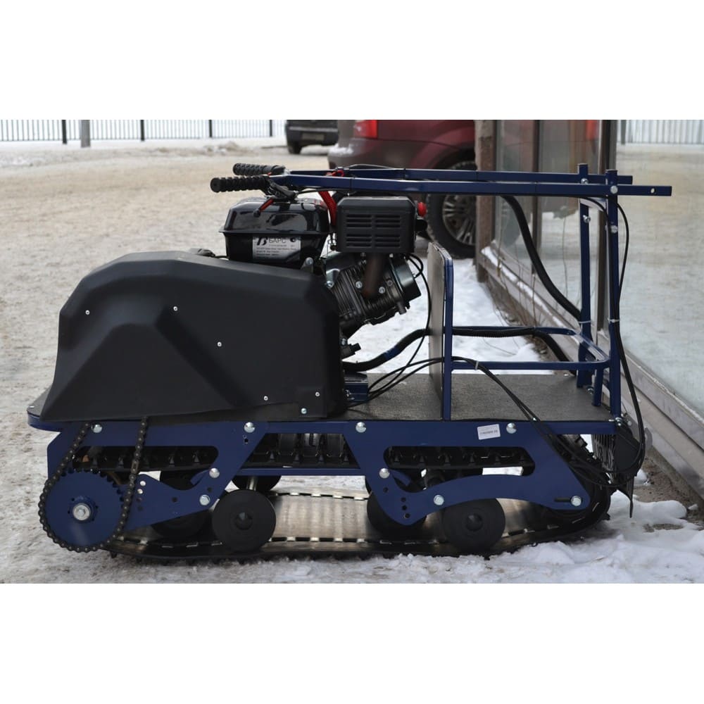 Мотобуксировщик Барс оснащен 4-х тактным двигателем мощностью 9 л. с., что позволяет достигать скорости до 45 км/ч. Это позволяет быстро перевозить груз весом до 120 кг в санях. Объем двигателя составляет 270 кубов.