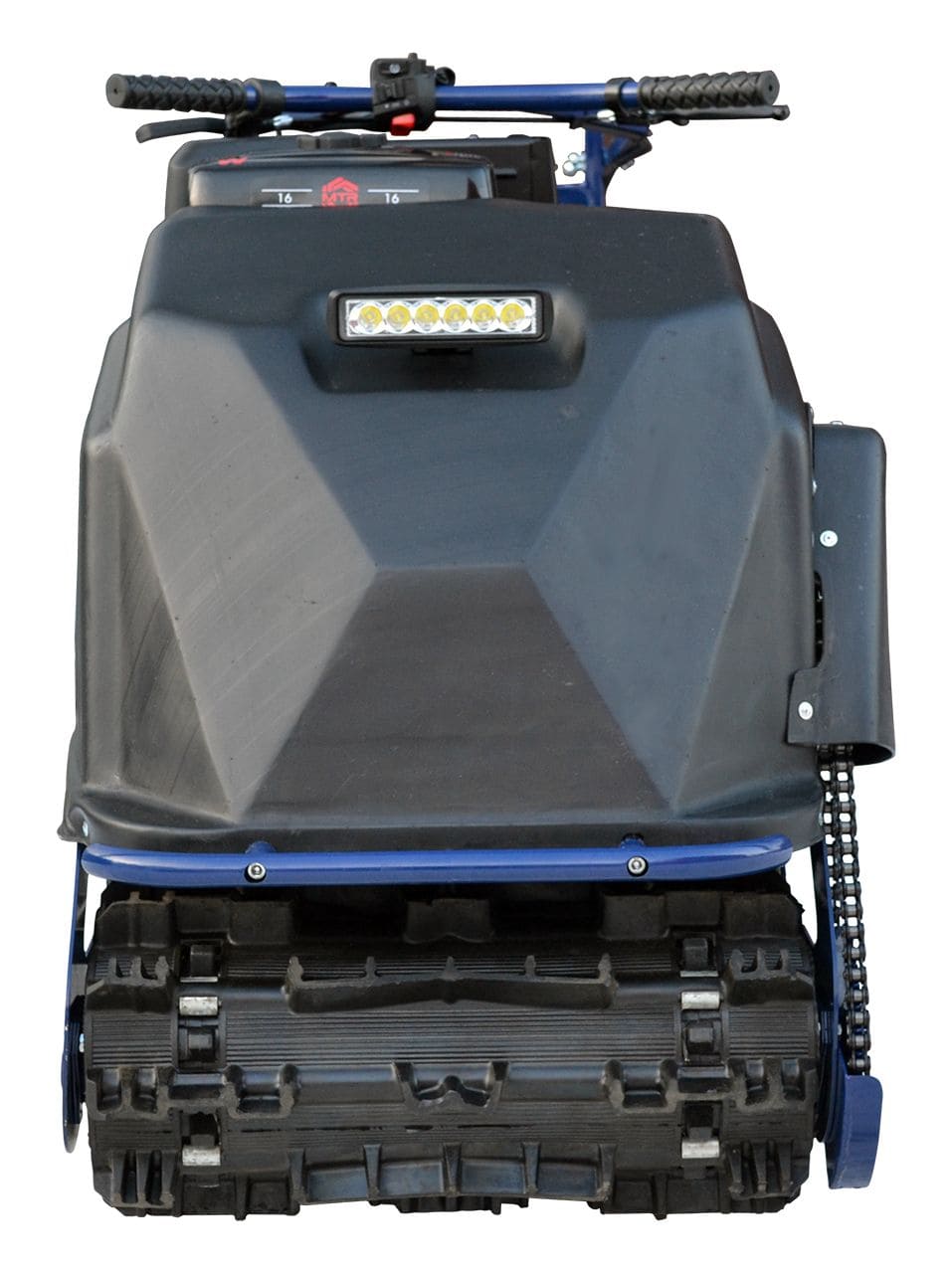 Модель оснащена гусеницей шириной 500 мм. Гусеница в сочетании с катковой подвеской способна проходить спокойно по льду и даже по территории без снега.