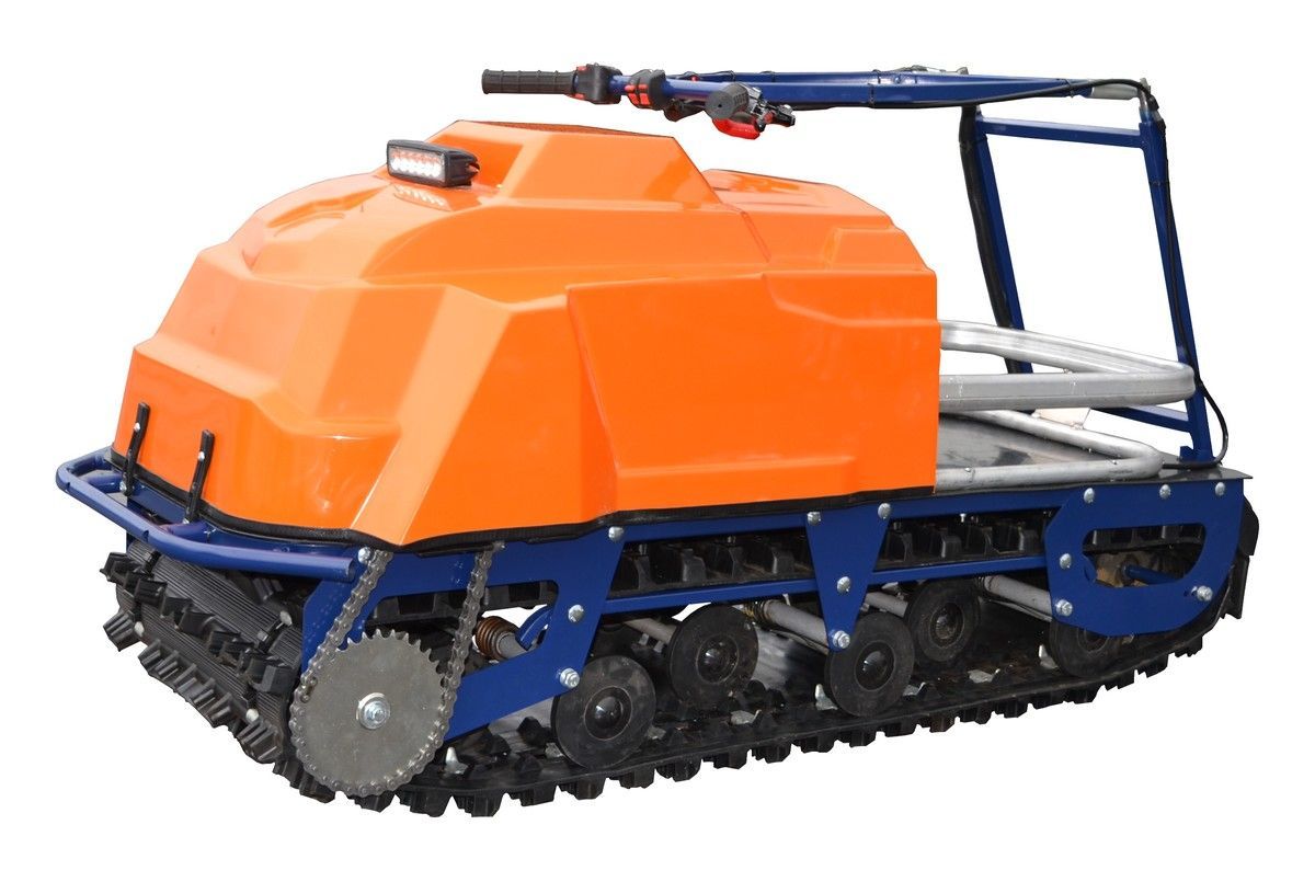 Для удобства управления, компактный блок управления вынесен на руль. Буксировщик оснащен усиленным фаркопом с подпружиненной собачкой. Для безопасной работы, буксировщик имеет чеку аварийного отключения двигателя.