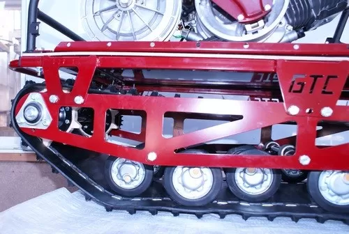 Модель оснащена гусеницей шириной 500 мм. Гусеница в сочетании с катковой подвеской способна проходить спокойно по льду и даже по территории без снега. Установлена цепь Ditton (Латвия), натягивается натяжным роликом.