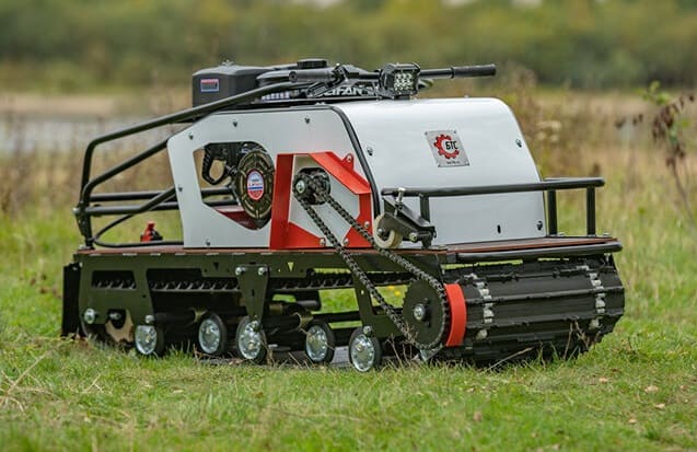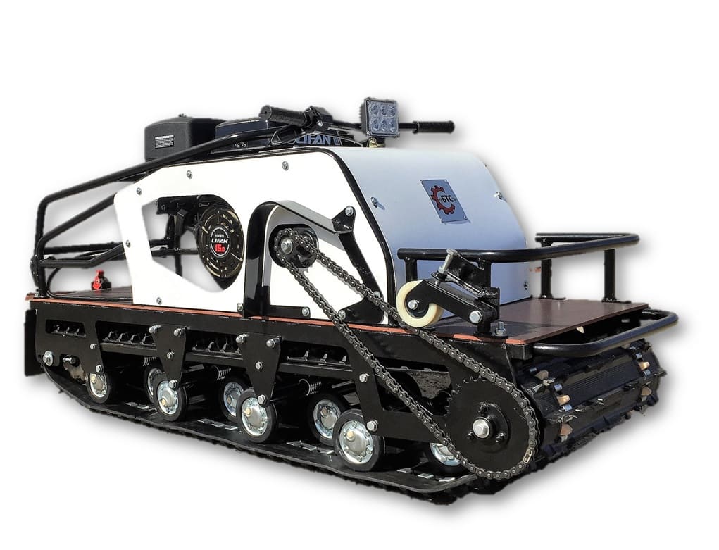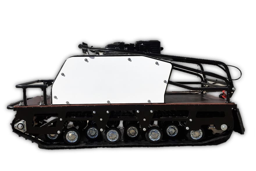 Модель оснащена гусеницей шириной 500 мм. Гусеница в сочетании с катковой подвеской способна проходить спокойно по льду и даже по территории без снега. Установлена цепь Ditton (Латвия), натягивается натяжным роликом.