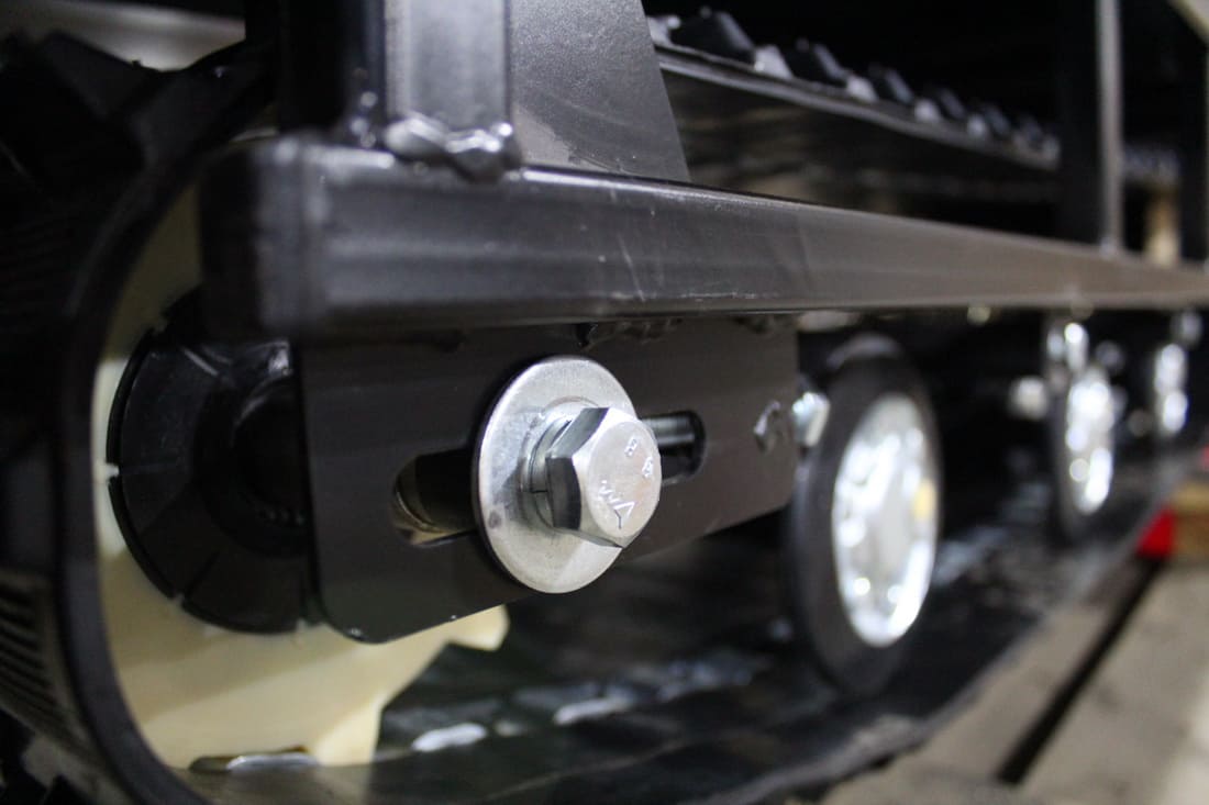 Модель оснащена гусеницей шириной 500 мм. Гусеница в сочетании с катковой подвеской способна проходить спокойно по льду и даже по территории без снега.