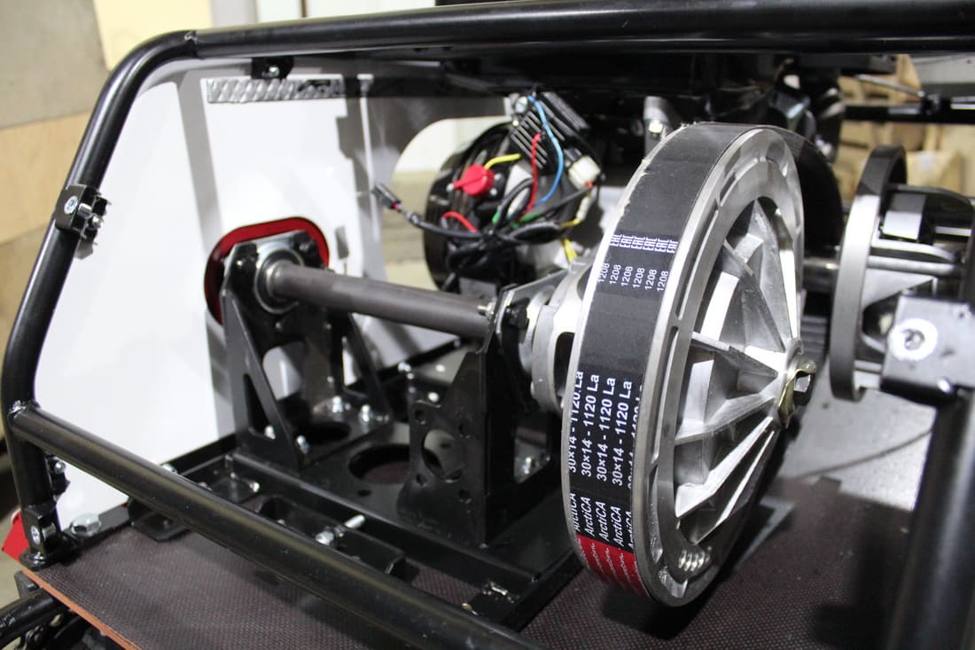 Рама максимально открытая, что улучшает выброс снега. Установлена защита нижней звезды. Двигатель и трансмиссия интегрированы на одной подмоторной плите, что позволяет точно выставлять шкивы относительно друг друга, вследствие чего устраняется перекос ремня вариатора и увеличивается его срок службы. Прочная стальная рама, каркас безопасности и металлический капот надежно защищают силовую установку мотобуксировщика.