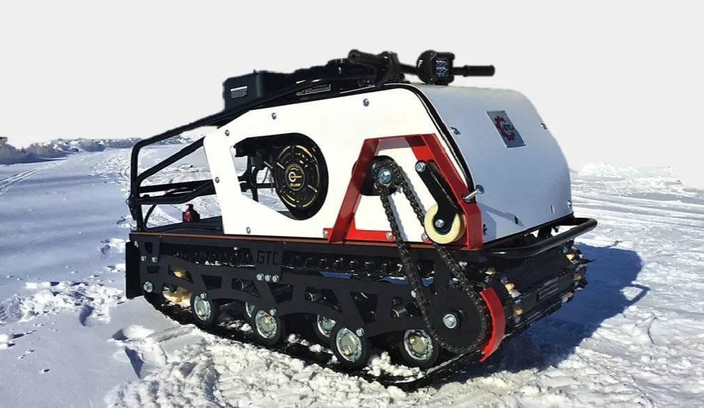 Модель оснащена гусеницей шириной 500 мм. Гусеница в сочетании с катковой подвеской способна проходить спокойно по льду и даже по территории без снега.