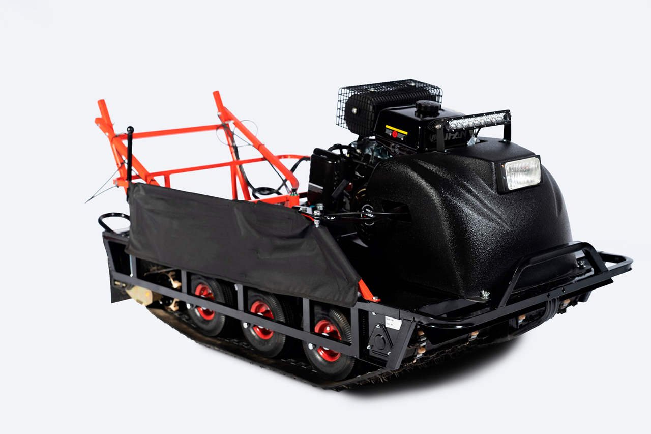 Мотобуксировщик Бурлак-М Экспедитор с возможностью всесезонного использования* Две гусеницы шириной 380 мм каждая обеспечивают высокую проходимость по любым видам покрытий. Подвеска унифицирована: зимой рекомендуется использование снегоходных тележек (катковая подвеска), летом и в межсезонье идеально работает пневмоподвеска. Данная модель управляется так же, как и любой классический мотобуксировщик, - при помощи складного руля, стоя либо сидя в волокушах зимой и в прицепе летом. Таким образом, нет необходимости ставить данную технику на учет и получать права на управление. Для зимы также разработан толкач для комфортной езды по глубокому снегу. Базовая модель комплектуется двигателем мощностью 15 либо 17 л.с. с катушкой 3А и регулятором напряжения, коробкой реверса, тормозом. Максимальная комплектация мотобуксировщика Бурлак Экспедитор поставляется с двигателем мощностью 17 либо 18.5 л.с. с катушкой 7А и регулятором напряжения, коробкой реверса, тормозом, а также включает подогрев ручек руля и курка газа, дополнительный источник освещения в виде светодиодной балки и дополнительную розетку. *Для всесезонного использования рекомендуется приобрести оба варианта подвески. Пневмоколеса не рекомендуется эксплуатировать при минусовых температурах. ВНИМАНИЕ! Для перехода со стандартной пневмоподвески на усиленную необходимо приобрести полный комплект колес вместе с осями. Производитель оставляет за собой право вносить изменения в конструкцию мотобуксировщика Бурлак-М.