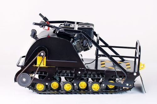 Мотособака весит всего 124 кг, а размер ее составляет 144 см в длину, 52 см в ширину и 80 см в длину. Благодаря своей легкости и компактности, мотобуксировщик способен маневрировать и проходить по рыхлой почве. К тому же мотобукс оснащен катковой подвеской, которая сглаживает ход, обеспечивает устойчивость на неровной поверхности, смягчает удары и вибрации от дороги.