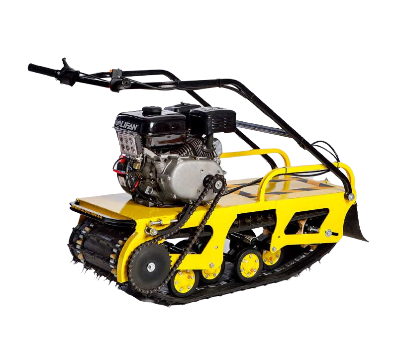 Мотособака весит всего 88 кг, а размер ее составляет 111 см в длину, 43 см в ширину и 58 см в высоту. Благодаря своей легкости и компактности, мотобуксировщик способен маневрировать и проходить по рыхлой почве. К тому же мотобукс оснащен катковой подвеской, которая сглаживает ход, обеспечивает устойчивость на неровной поверхности, смягчает удары и вибрации от дороги.