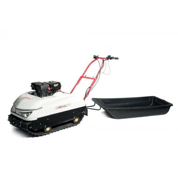 Мотособака весит 110 кг, а размер ее составляет 122 см в длину, 62 см в ширину и 78 см в высоту. Благодаря своей легкости и компактности, мотобуксировщик способен маневрировать и проходить по рыхлой и мягкой почве. К тому же мотобукс оснащен катковой подвеской, которая сглаживает ход, обеспечивает устойчивость на неровной поверхности, смягчает удары и вибрации от дороги.