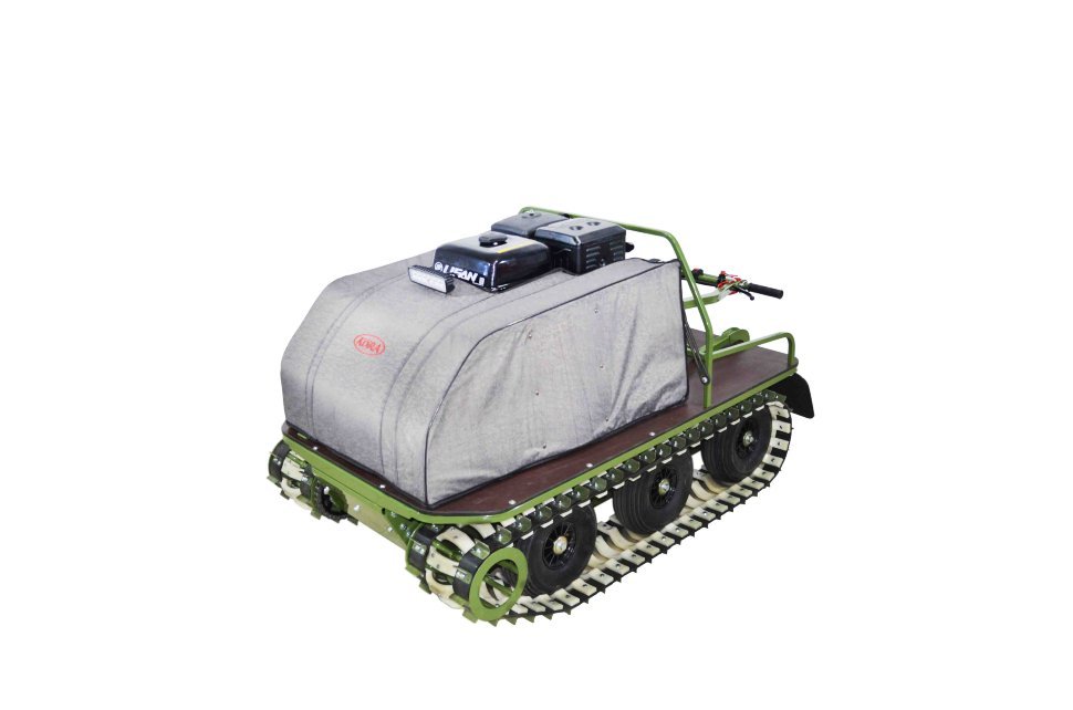 Мотособака весит 143 кг, а размер ее составляет 148 см в длину, 87 см в ширину и 90 см в высоту. Благодаря своей легкости и компактности, мотобуксировщик способен маневрировать и проходить по рыхлой и мягкой почве. К тому же мотобукс оснащен катковой подвеской, которая сглаживает ход, обеспечивает устойчивость на неровной поверхности, смягчает удары и вибрации от дороги.