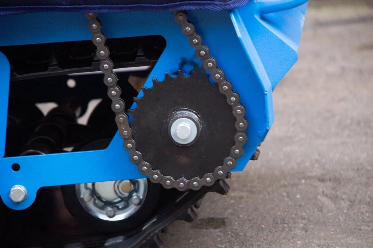 Мотобуксировщик имеет гусеницу шириной 500 мм из прочного материала, обеспечивающую отличное сцепление на льду и на снегу. Широкая поверхность равномерно распределяет вес, предотвращая проваливание в снег, а конструкция гусеницы улучшает маневренность и устойчивость. Кроме того, качество гусеницы позволяет использовать устройство круглый год!