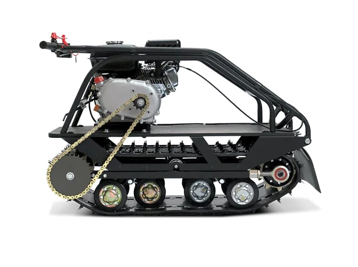 Мотособака оснащена специальной гусеницей Composit, которая обеспечивает отличное сцепление со снегом и со льдом благодаря своим техническим качествам, а также тракторным механизмом натяжения цепи.