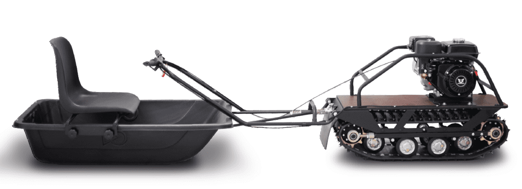 Мотособака оснащена специальной гусеницей Composit, которая обеспечивает отличное сцепление со снегом и со льдом благодаря своим техническим качествам, а также тракторным механизмом натяжения цепи.