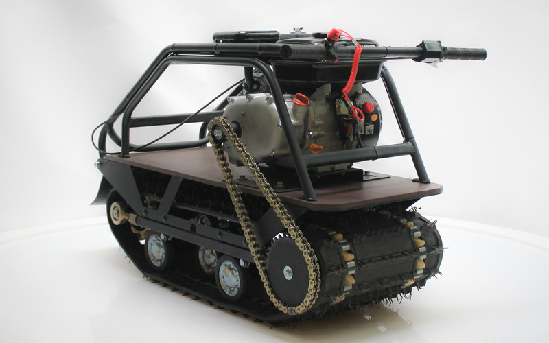При этом крепление руля находится максимально низко (на уровне гусеницы), т.е. сила, которую вы прикладываете для поворота не стремится опрокинуть буксировщик на бок, так как если бы руль крепился выше (например на уровне двигателя).