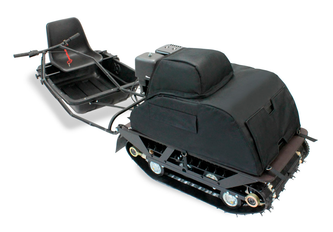 Трансмиссия — проверенный вариатор САФАРИ. Непромокаемый чехол полностью защищает все агрегаты от снега и наледи, и имеет карманы для доступа ко всем органам управления.