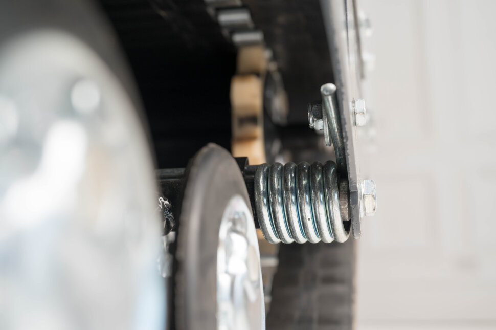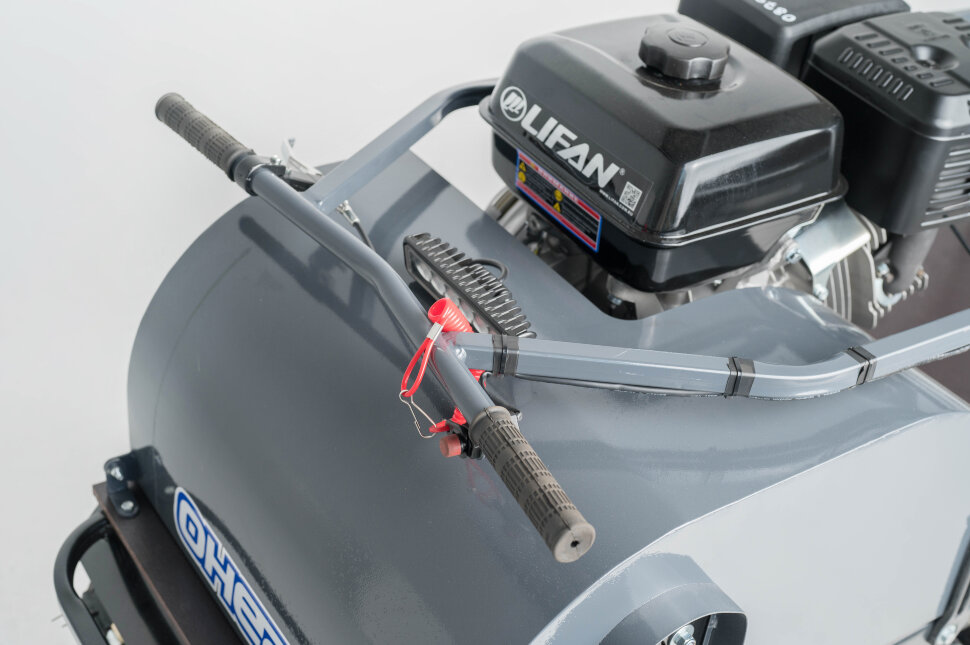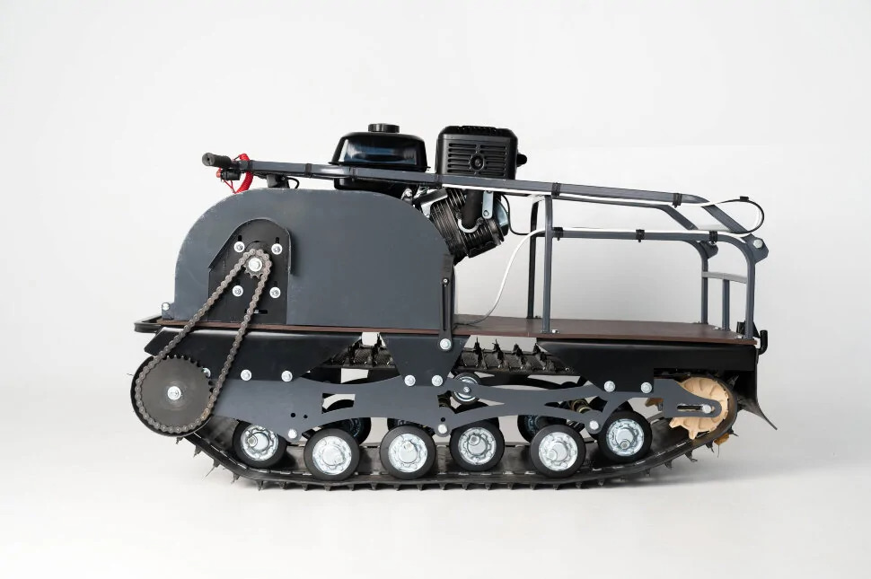 Катковая подвеска упрощена и не дает гусенице забиваться снегом. Также на данном мотобуксировщике установлены обрезиненные катки с сальниками и ведомая звезда, которая самоочищается от снега и льда. На мотобуксировщике также установлена настраиваемая рукоятка, регулируемая по высоте в зависимости от роста водителя.