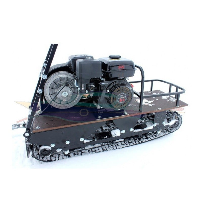 Буксировщик оснащен 4-х тактным двигателем мощностью 9 л. с., достигающий скорость до 40 км/ч. Это позволяет быстро перевозить груз до 450 кг в санях и на специальной багажной площадке мотобуксировщика. Объем двигателя составляет 270 кубов.