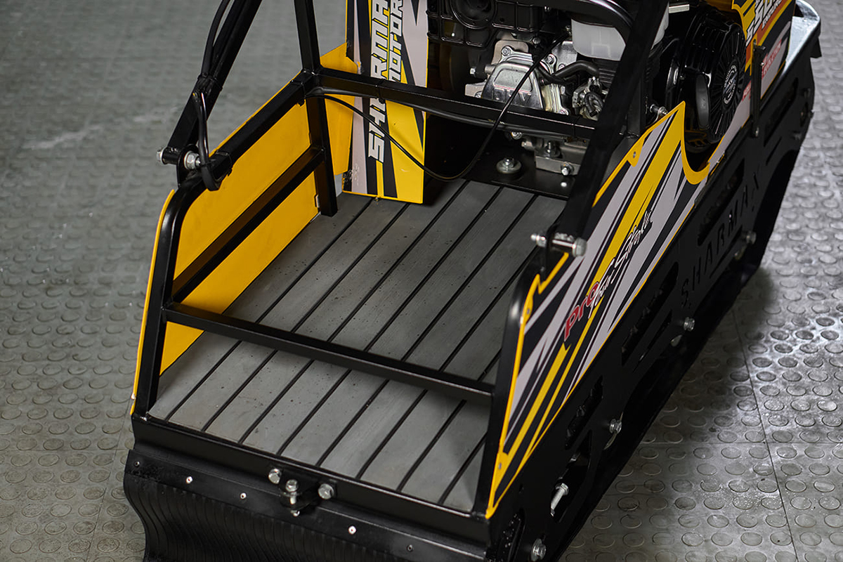 Уникальная конструкция рёбер жёсткости и формы кузова позволила избежать избыточного веса мотобуксировщика, и даже на 7% уменьшить вес среди аналогичных классов моделей других брендов. Теперь сухая масса Sharmax S500 1450 HP18 Enduro составляет всего 90 кг.