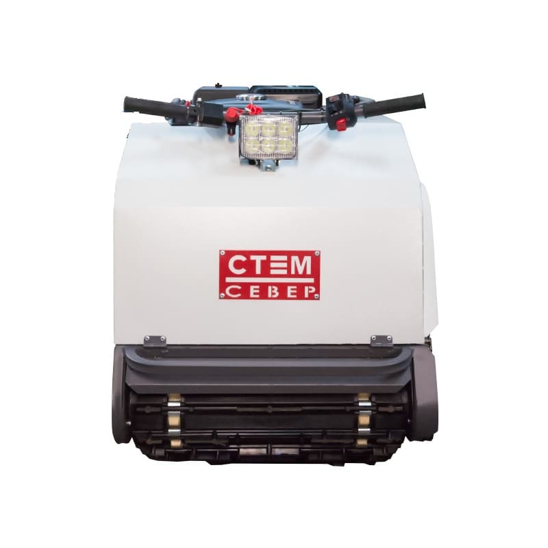 В конструкции мотовездехода используется цельная резиновая гусеница шириной 500 мм. Гусеница в сочетании с катковой подвеской способна проходить спокойно по льду и даже по территории без снега.