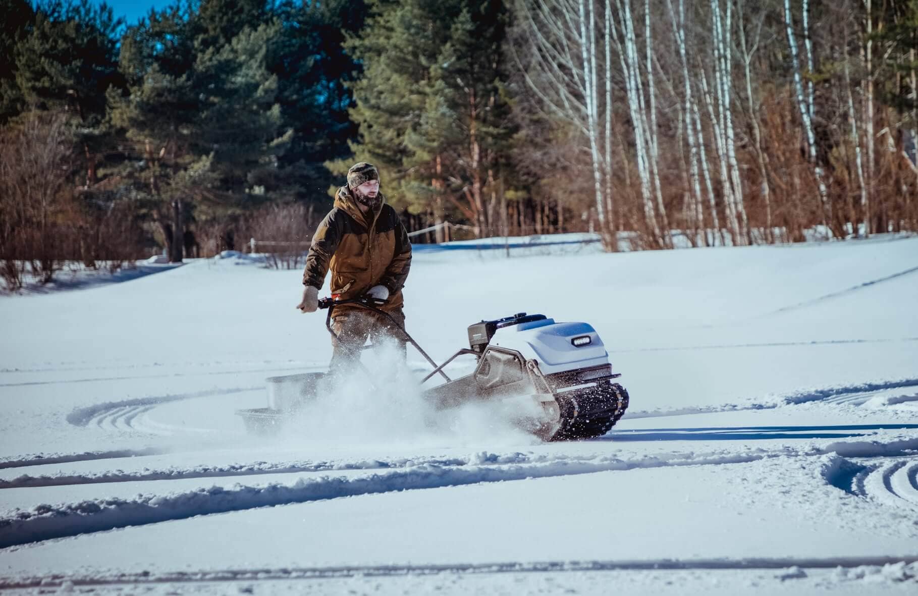 Мотособака весит 154 кг, а размер ее составляет 149 см в длину, 60 см в ширину и 83 см в высоту. Благодаря своей легкости, мотобуксировщик может маневрировать и проходить по рыхлой и мягкой