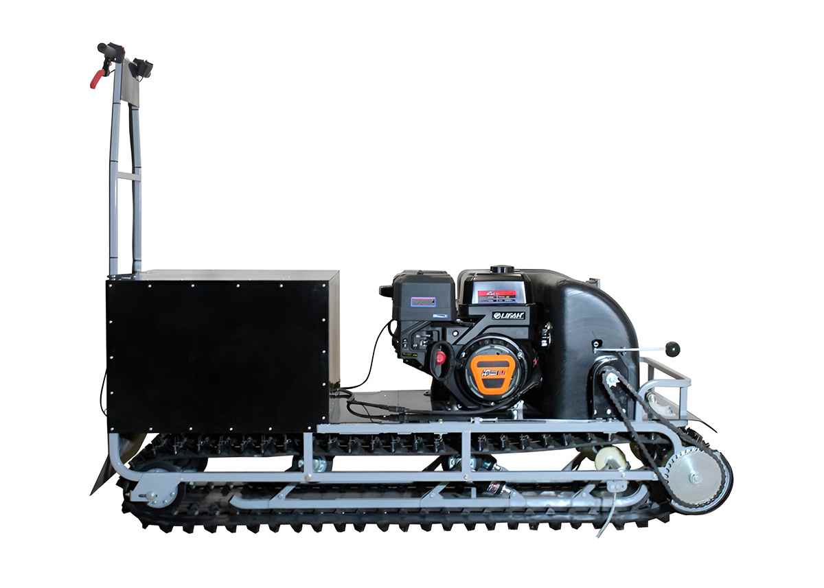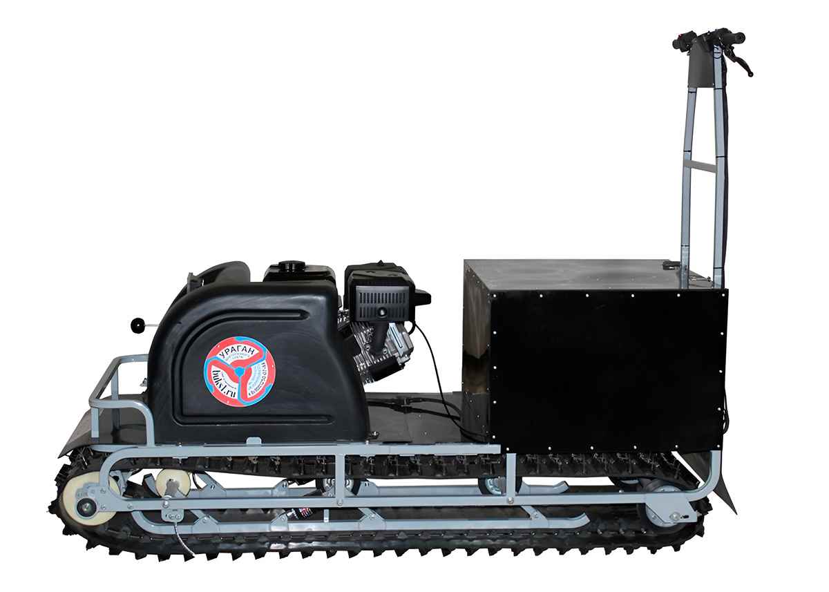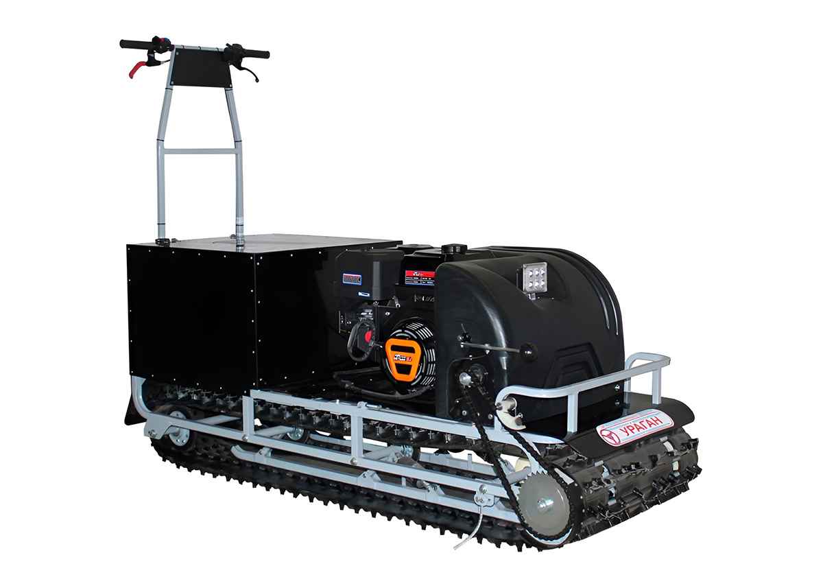 В конструкции мотовездехода используется цельная резиновая гусеница шириной 500 мм. Увеличенная площадь опоры гусеницы улучшает тяговые характеристики, проходимость и устойчивость буксировщика. Мотобукс оснащен специальной системой очистки гусеницы, благодаря которой не скапливается снег внутри и не увеличивает общего груза на транспорте.
