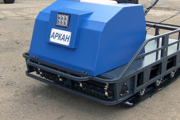 Модель оснащена гусеницей шириной 380 мм. Гусеница в сочетании с катковой подвеской способна проходить спокойно по льду и даже по территории без снега.