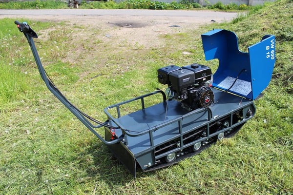 На мотобуксе установлена катковая подвеска. Катки устанавливаются на оси и предназначены для смягчения ударов и вибраций, возникающих при движении по неровной местности. Подвеска также способствует лучшей проходимости и устойчивости мотобуксировщика, обеспечивая более комфортное и безопасное передвижение как в сельской местности, так и на дорогах.