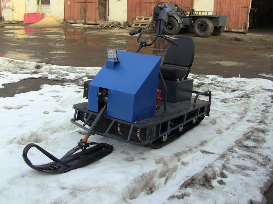 Модель оснащена гусеницей шириной 380 мм. Гусеница в сочетании с катковой подвеской способна проходить спокойно по льду и даже по территории без снега.