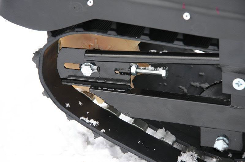 Ходовая часть Утилитарного Волгаря модернизированная. Добавлена дополнительная ось для снижения нагрузки на подшипники приводного вала, что увеличивает надежность конструкции и срок службы узлов и деталей. Также это позволило разместить звезду цепной передачи выше на 25 мм. Для транспортировки грузов предусмотрено крепление с отбойником для саней волокуш.