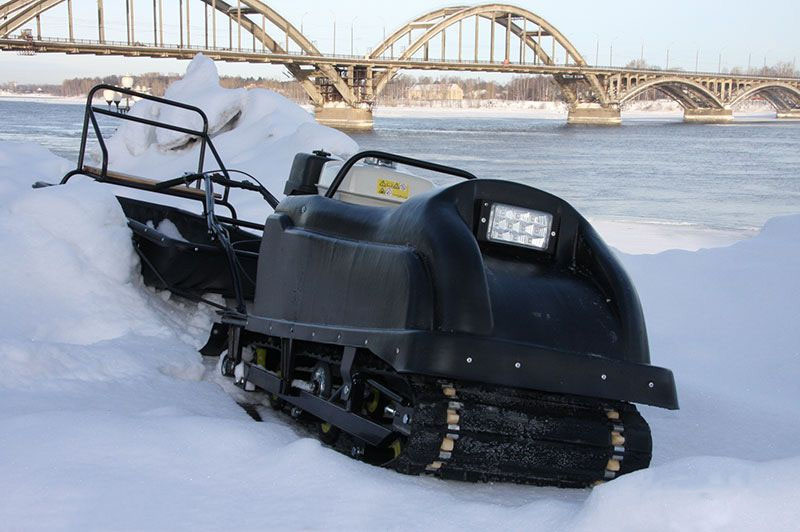 Мотособака весит 101 кг, а размер ее составляет 155 см в длину, 64 см в ширину и 84 см в высоту. Модель оснащена гусеницей шириной 500 мм. Гусеница в сочетании с катковой подвеской способна проходить спокойно по льду и даже по территории без снега.