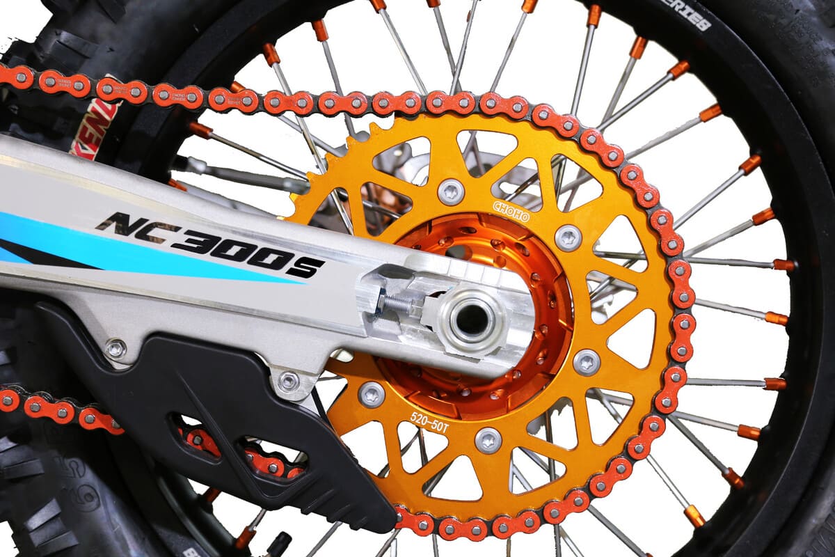 BRZ X8 NC300s 24 Orange – это настоящий зверь, готовый покорять бездорожье. Мощный двигатель ZS182MN NC300s, дополненный карбюратором NIBBI RACING PWK 34, обеспечивает невероятную динамику и отзывчивость. 6-ступенчатая коробка передач позволяет вам выбрать оптимальный режим движения для любых условий. Новая рама типа K10 стала легче, за счет новой геометрии имеет потрясающую управляемость.
