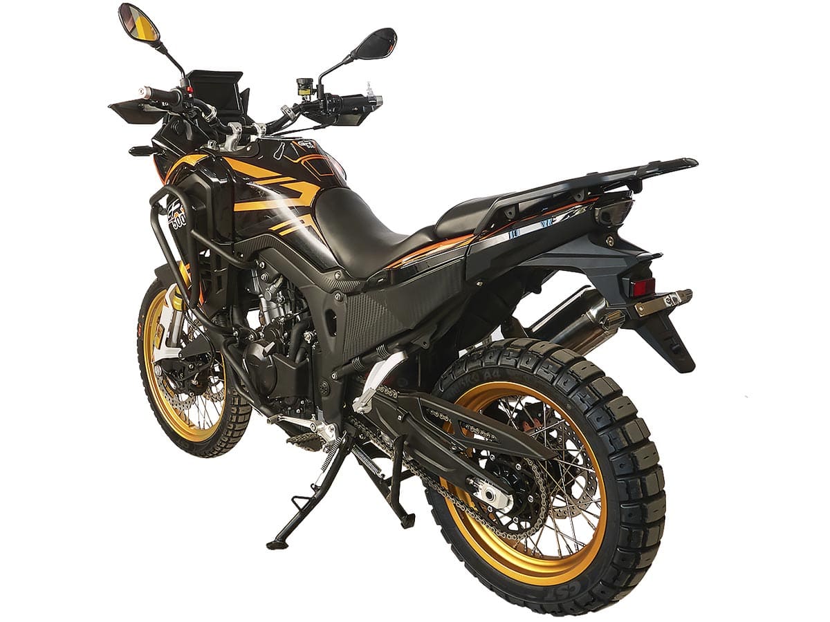 Мотоцикл GR 500 21/18 — это идеальный вариант для путешествий и скоростных поездок. Модель оснащена одним из самых надёжных двигателей — двухцилиндровым 4-тактным LONCIN с большим запасом мощности. Система подготовки топлива — инжекторная, что позитивно отражается на потенциале использования мотоцикла. Мотоцикл с ПТС, а значит на нём можно разъезжать по дорогам общего пользования. Также его можно эксплуатировать в тяжёлых условиях езды, ведь благодаря тщательно продуманной эргономике и регулируемой подвеске он без проблем преодолевает труднопроходимые участки с грязью, пылью и песком.