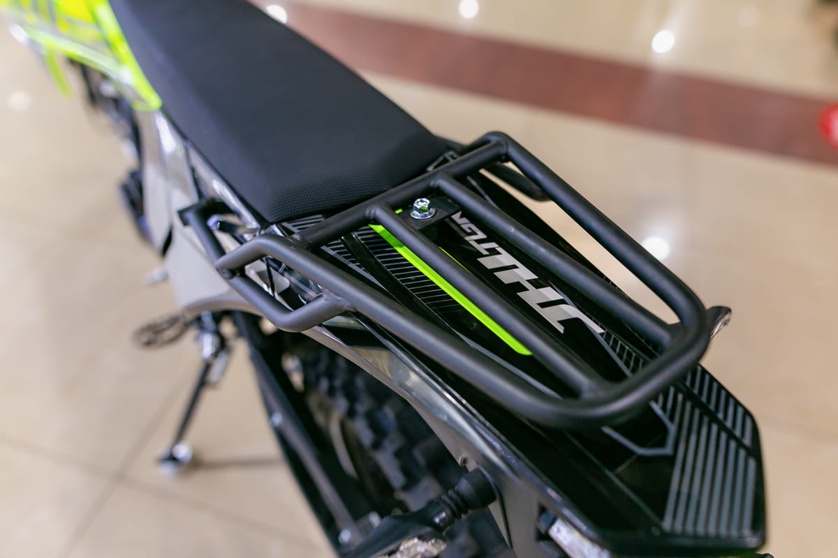 Система амортизации JHL S004, включающая перевернутую телескопическую переднюю вилку и задний моноамортизатор, обеспечивает отличную управляемость и комфорт даже на сложных участках дороги. Кроссовые шины на колесах размером R21 и R18 обеспечивают надежное сцепление и стабильность на различных типах покрытий.