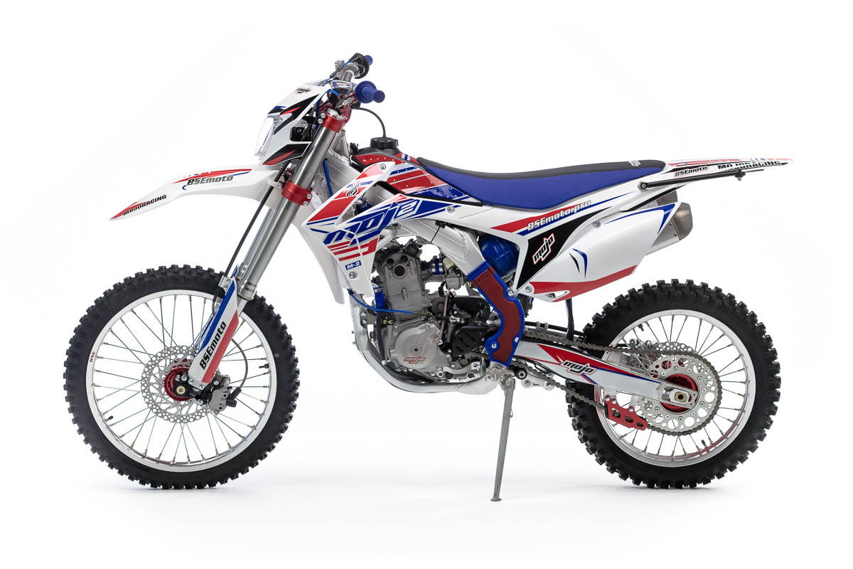 M2 уже в заводской комплектации готов к покорению серьезного бездорожья и участия в соревнованиях. Подвеска MOJO c большими ходами имеет полный диапазон регулировок и помогает отрабатывать даже самые жесткие приземления, с лёгкостью "проглатывает" все неровности. Идеальная развесовка и сбалансированность конструкции мотоцикла даёт преимущество при прохождении острых поворотов и подъёмов.
