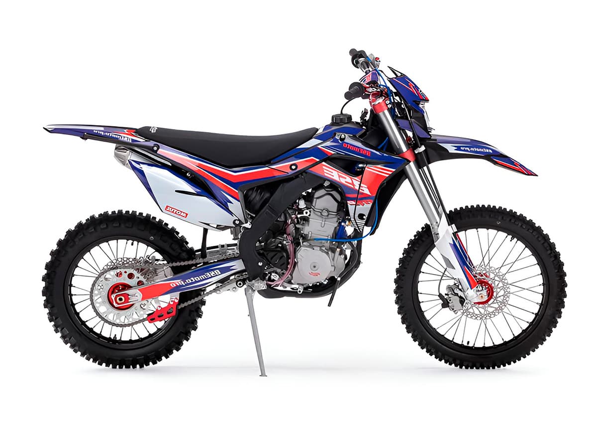 На мотоцикле установлено все необходимое для оффроуда: вилка “перевертыш”, литые рычаги задней прогрессии, алюминиевый маятник, прочный задний бугель, “злая” внедорожная резина Kenda. А также: усиленные легкосплавные колёсные диски MOJO, усиленная цепь, датчик моточасов, прочные анодированные CNC ступицы, складные СNC рычаги тормоза и сцепления, колесные подшипники NTN, защита коллектора, картера двигателя и тормозных дисков. Мощная гидравлическая тормозная система HSК Racing остановит байк в любых условиях.