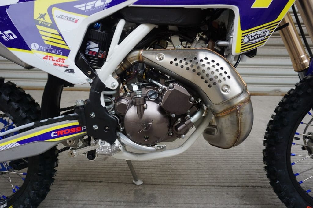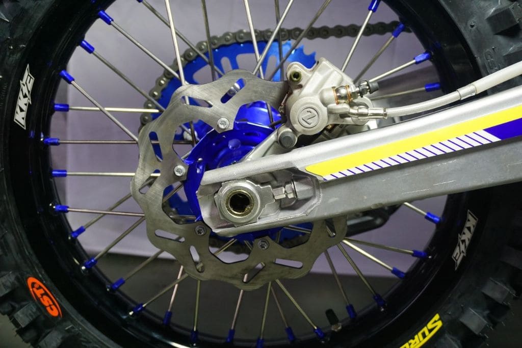 В основе конструкции мотоцикла лежит надежная стальная рама с установленным в нем 2-тактным мотором с водяным охлаждением – абсолютно точной копией Yamaha DT230 Lanza. Подвеска аппарата представлена алюминиевым маятником с прогрессией, телескопической вилкой спереди и задним моноамортизатором с возможностью настройки, руль переменного сечения TWINWALL.