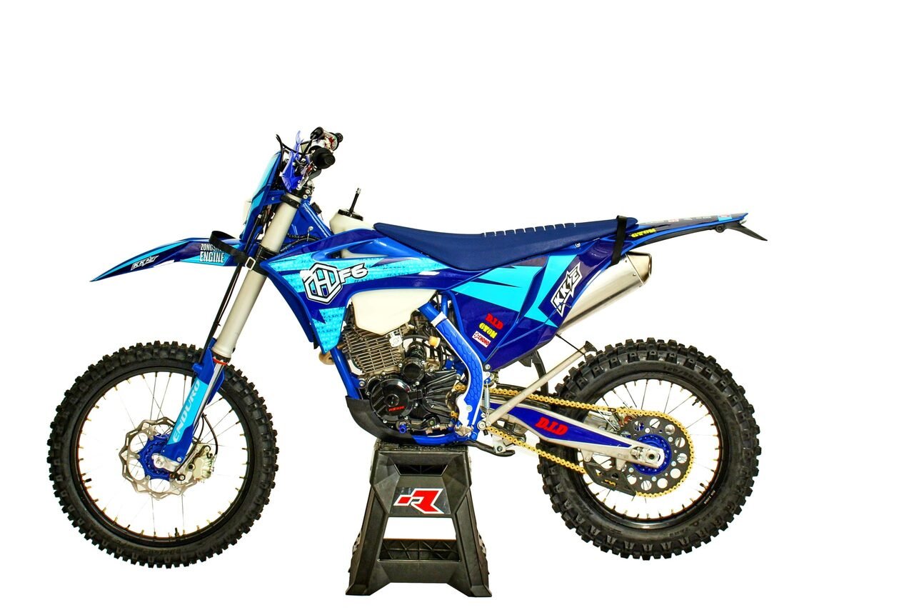 Мотоцикл Hasky F6 — полноразмерный мотоцикл с двигателем 172 FMM и увеличенной поршневой на 74мм. Максимально продуманное соотношение ресурса, мощности и комплектации. Идеально подходит для гражданского эндуро. Ходы подвесок позволяют ехать любые бревна, а 120 задняя покрышка обеспечит зацеп на любом покрытие. В заводской комплектации есть стропы, руль рентал, моточасы и приборная панель.