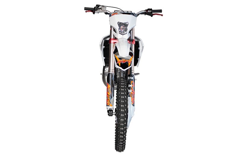 В прочной и легкой раме, разработанной специалистами компании KAYO, установлен 230-кубовый двухтактник жидкостного охлаждения с 6-ступенчатой коробкой передач, который в паре с карбюратором NIBBI PWK38 способен развивать максимальную мощность в 40 лошадиных сил. Запуск мотора можно осуществлять как нажатием кнопки электростартера, так и при помощи рычага кик-стартера.