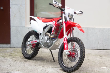 В этом сезоне Motax представил множество моделей кросс и эндуро мотоциклов. И вот одна из новинок, перед вами - MOTAX LD 300, в ярко красном цвете. Рама AJ1® повышенной прочности из “отливок” алюминия 6063, полноразмерная, сбалансированная. Двигатель 4 тактный ZS 300сс AJ1® с водяным охлаждением и расширительным бачком. Карбюратор NIBBI RACING 34. Коробка передач механическая, шестиступенчатая. Мощность мотоцикла 34 л.с. Усиленные алюминиевые колеса, повешенной прочности. Фара LED, счетчик моточасов, электростартер. Комплектация богатая и радует своим исполнением: CNC траверсы и ступицы, подножки, крышка бака. Спортивный CDI, рычаги IGP (складные). Тормозная система NISSIN. Выхлопная система копия FMF с Power Bomb.