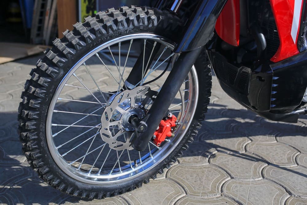 Мотоцикл больше предназначен для езды по пересеченной местности полям и лесам, чем для города из-за профиля резины. Он маневренный и удобный, максимальную скорость – 120 км/ч. Будет достаточно для неспешных поездок на дальние расстояния.