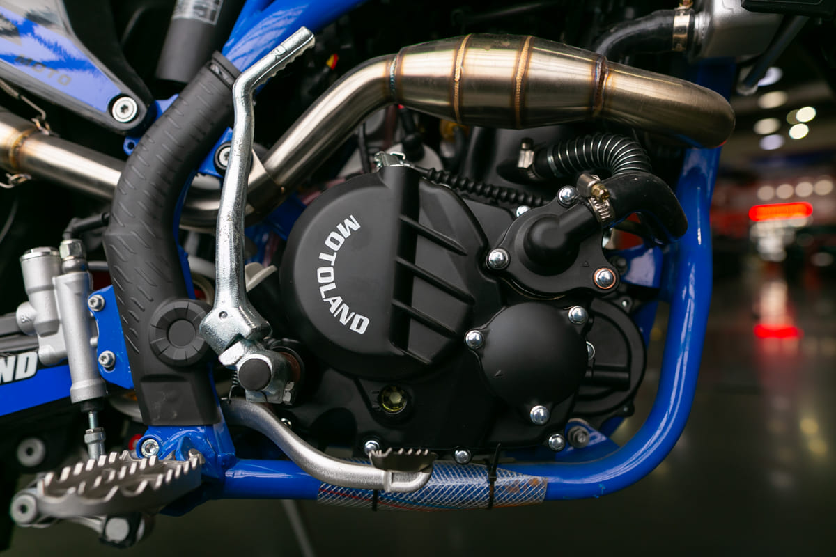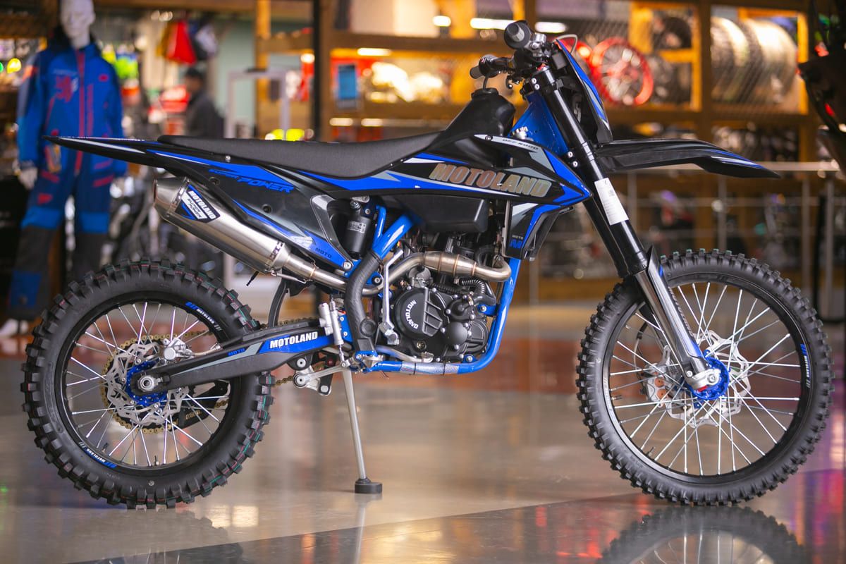 В основе Motoland FX 300 лежит 300-кубовый мотор с маркировкой 174MN-3. Мощность этого агрегата составляет внушительные 26 л.с., что обеспечивает впечатляющую динамику и уверенный разгон даже на наиболее трудных отрезках пути. За счет балансирного вала мотор работает плавно и без вибраций, позволяя гонщику полностью сосредоточиться на управлении. Мотоцикл можно завести как при помощи электростартера, так и кикстартером, делая его уверенным в самых разнообразных условиях. Для поддержки необходимой температуры в двигателе установлена высокоэффективная система охлаждения водяного типа.