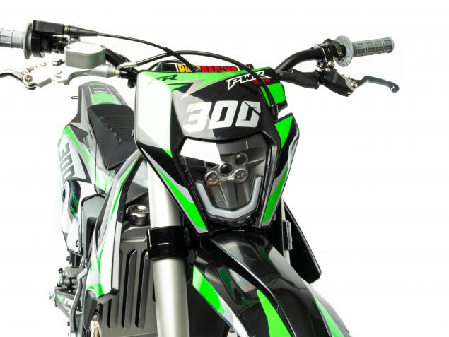 PWR FR300 PRO (174MN) - новинка 2022 г. Современный дизайн мотоцикла подчёркивает спортивный характер байка. Установлен мощный двигатель с водяным охлаждением ZONGSHEN 174MN-3. Большой ход подвесок для комфортного передвижения по пересеченной местности, которые также позволяют ехать быстро и агрессивно.