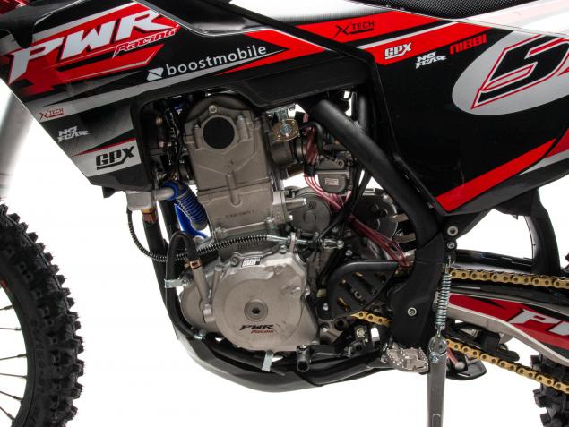 Топовый мотоцикл линейки PWR выглядит соответствующе — стильно и солидно. Без лишнего пафоса, но с уверенностью в собственном превосходстве над аналогами. Как и другие модели PWR, кроссовq 450 кубовый мотоцикл покрыт комбинированным пластиком, который не ломается при сгибании. Все стыки идеально подогнаны, наклейки ровные. Кроссовый мотоцикл доступен в синем цвете — внешний вид кросса подчёркивает несгибаемый характер и нацеленность на бескомпромиссную спортивную борьбу.
