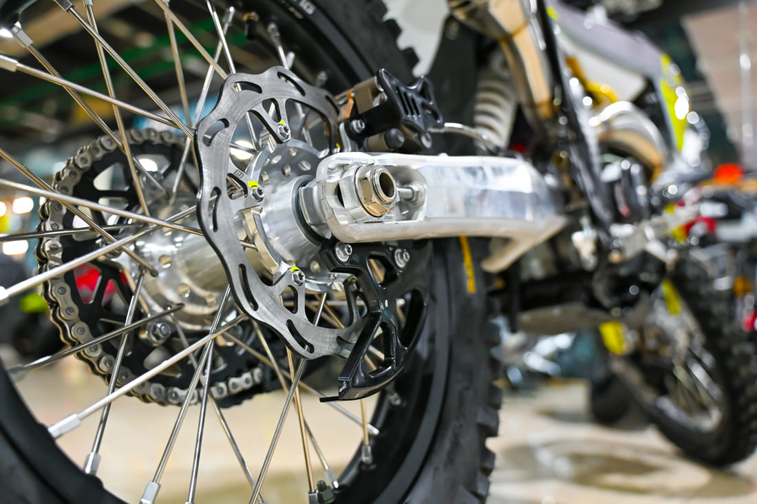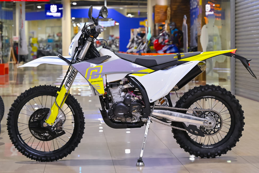 - Шины: Специальные шины 90/90-21 и 140/80-18 из уникального состава резины, которые «липнут» к поверхности, обеспечивая отличное сцепление.