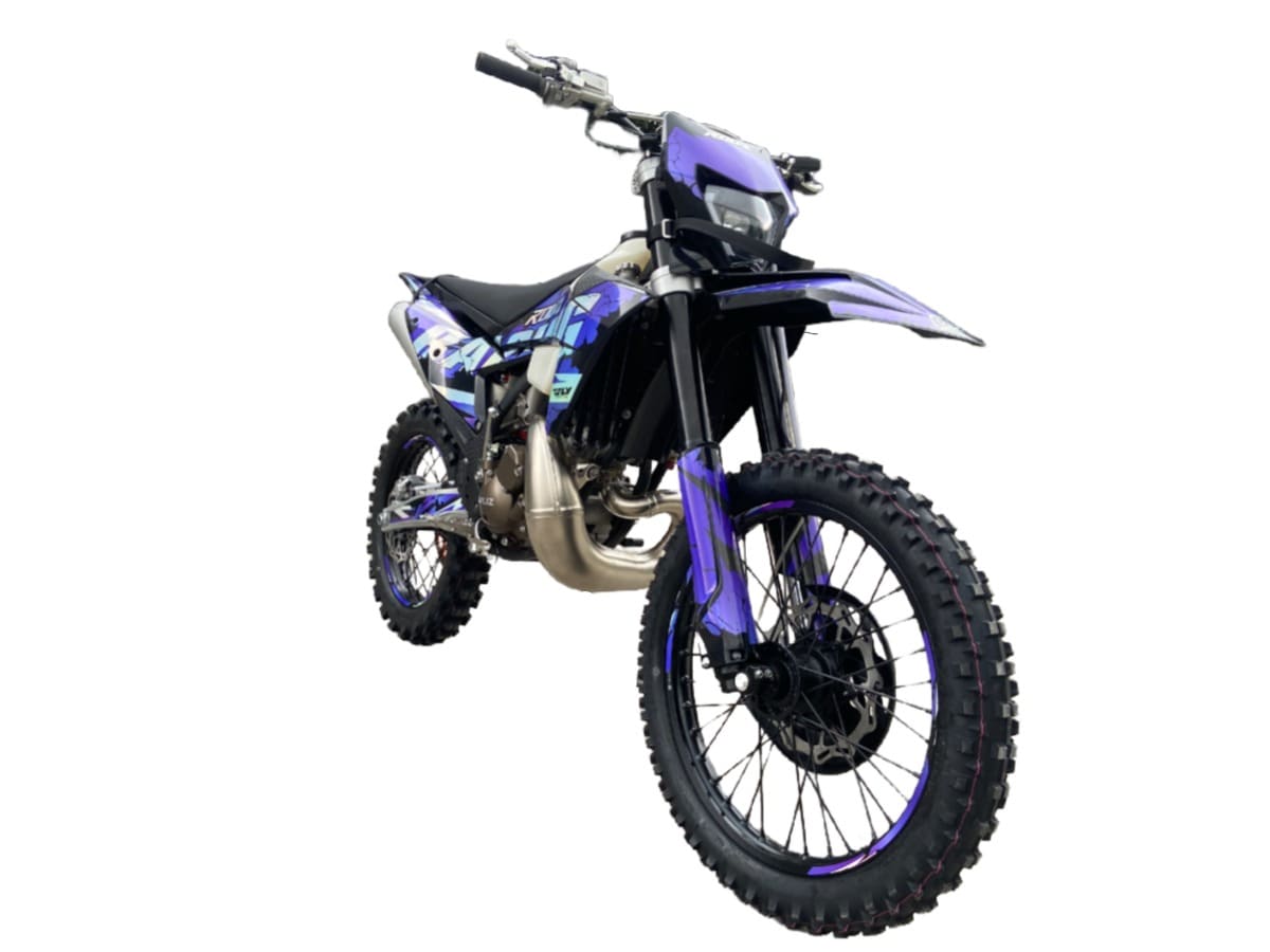 Мотоцикл оснащен мощным двухтактным двигателем LONCIN MT250 с рабочим объемом 250 см³, который развивает до 28 лошадиных сил. Вертикальная установка двигателя способствует равномерному распределению веса и улучшенной динамике. Этот двигатель славится своей надежностью, высокой отдачей мощности и отличной топливной экономичностью.