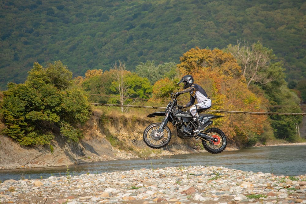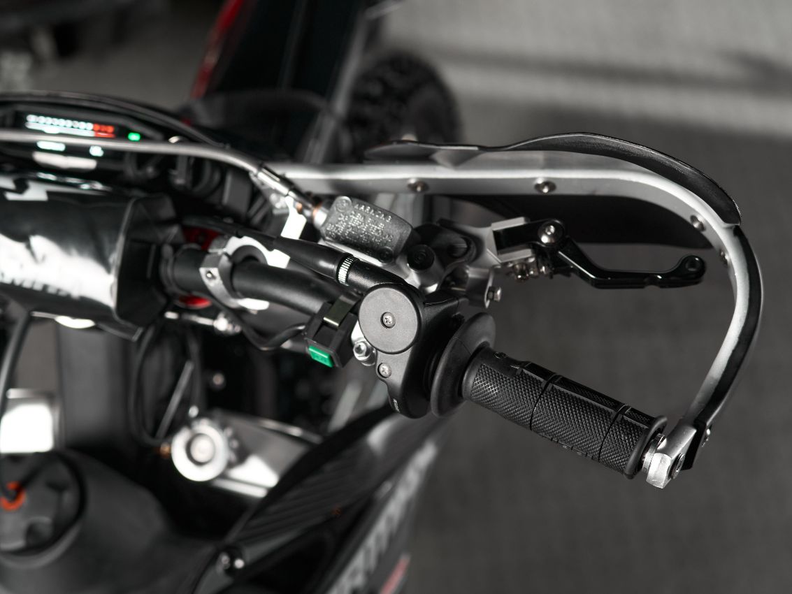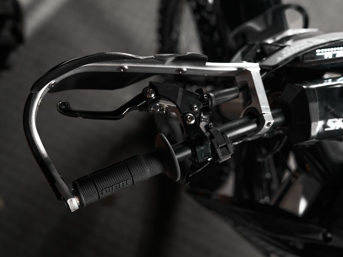 Статус премиального эндуро байка дополняет эргономичный конический руль. Материал — высокопрочный алюминий. Грипсы мягкие и не скользят, защита для рук выдержит сотни падений. Вам останется лишь уверенно схватиться за руль и полететь вперёд со скоростью ветра.