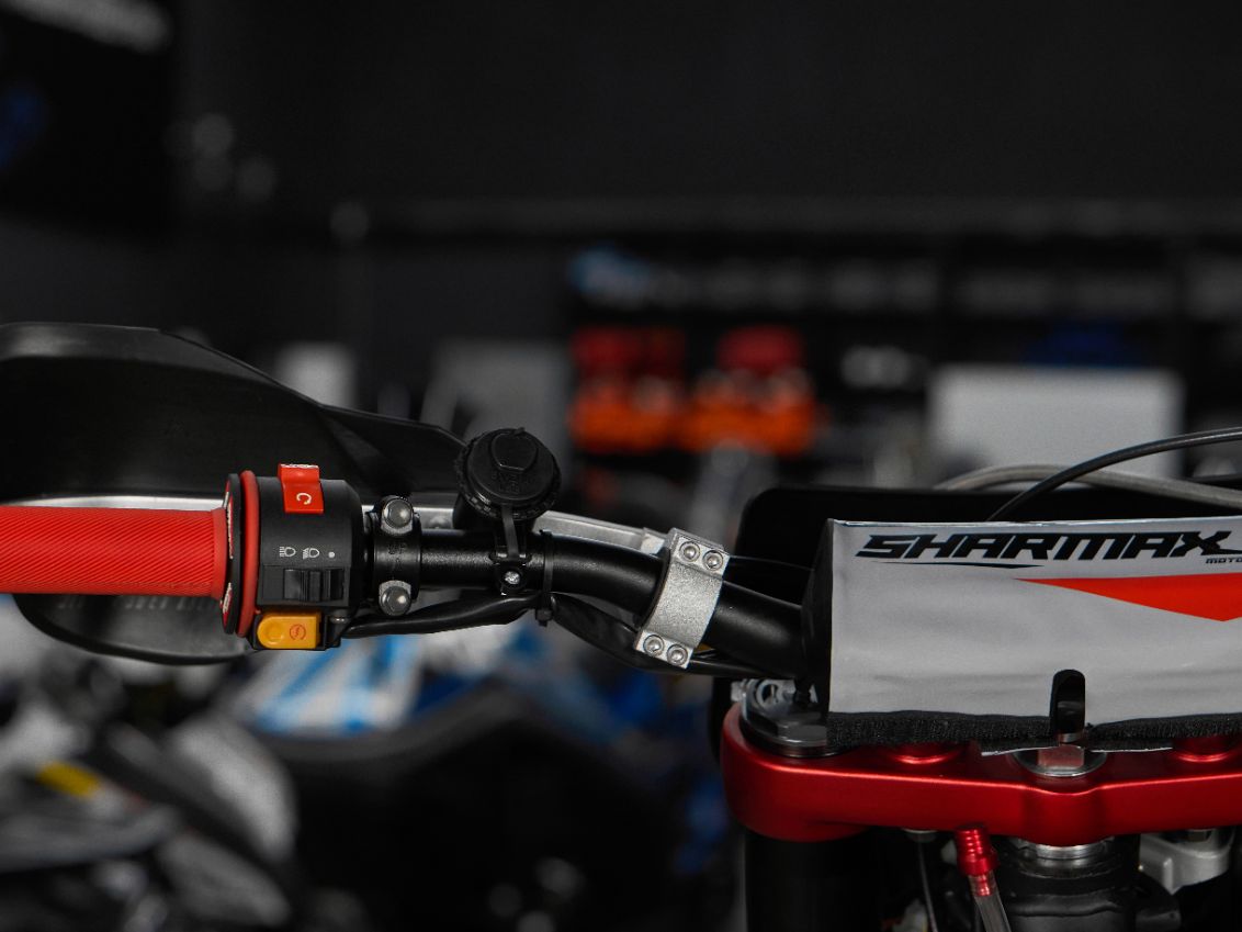 Руль на мотоцикле Sharmax Motors Powermax 300 Air изготовлен из прочного облегчённого алюминиевого сплава по технологии двойного сечения FATBAR. Цепкие грипсы позволяют кистям рук меньше уставать и дозировать открытие заслонки карбюратора максимально точно. Откидывающиеся ручки-неломайки станут приятным бонусом на самых хардовых маршрутах.