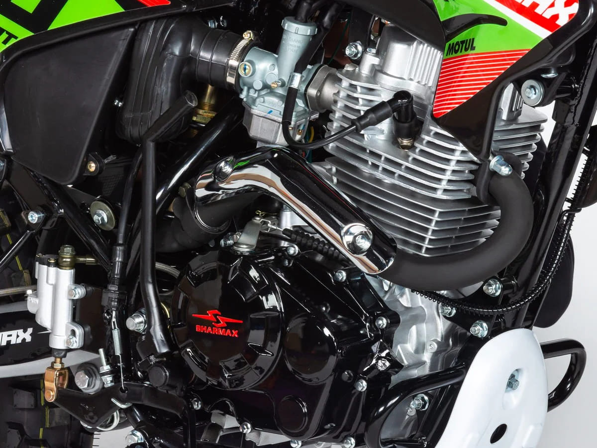 Sharmax Sport 240 оборудован системой воздушного охлаждения. Нет громоздкого радиатора, вес байка стал меньше, управляемость — лучше. Просто нажмите на газ — и вперёд! За температуру не переживайте — не перегреетесь.