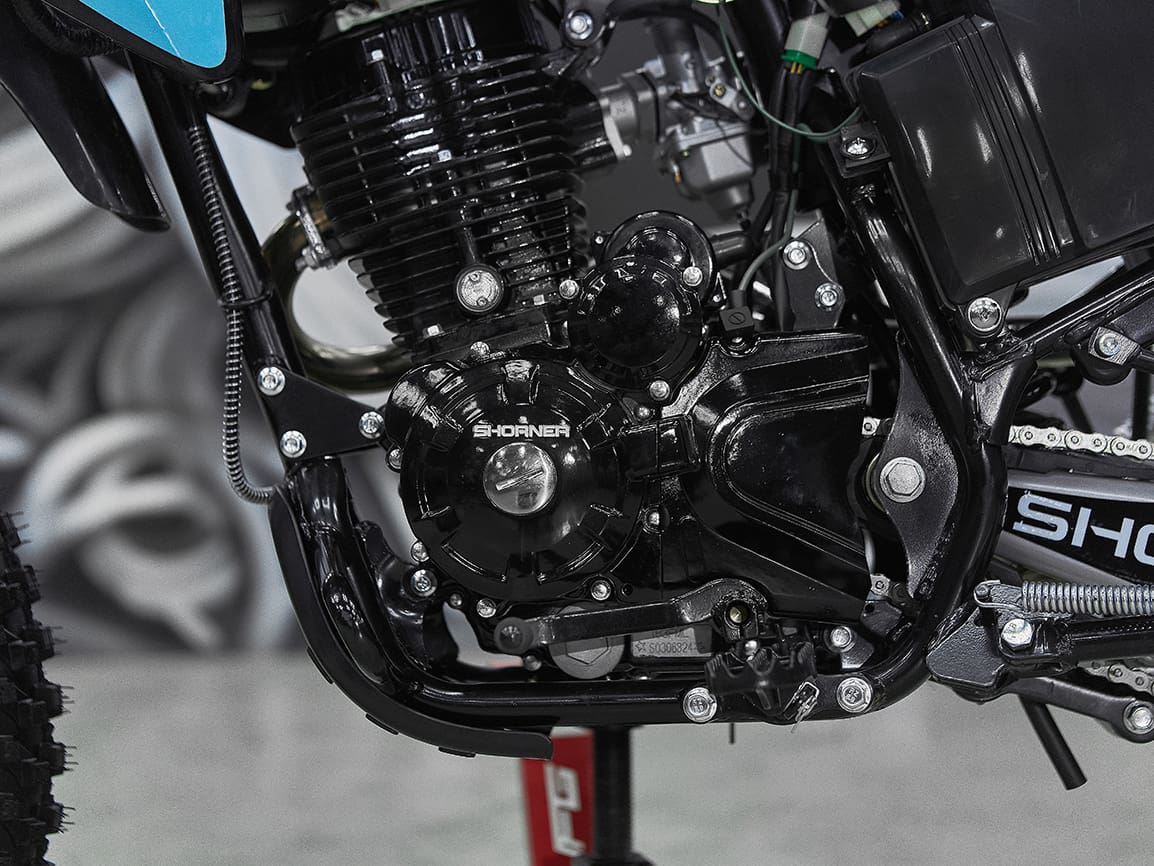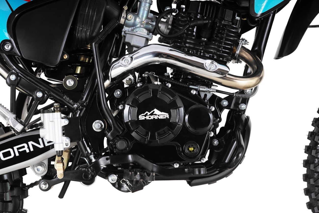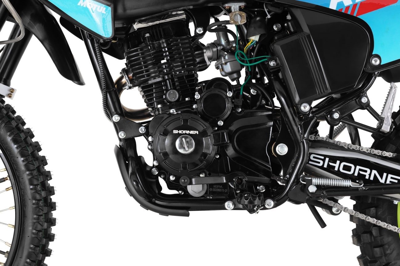 Сердце Shorner R240 — двигатель модели ZS163FML. Его объём — 200 см³, а мощность — 13 л. с. Благодаря воздушному охлаждению и карбюратору PZ30, двигатель работает стабильно и эффективно в любых условиях. Запуск осуществляется с помощью электростартера или кикстартера, что делает эксплуатацию мотоцикла удобной и простой. Вы сможете быстро стартовать в любой ситуации, не теряя драгоценного времени.